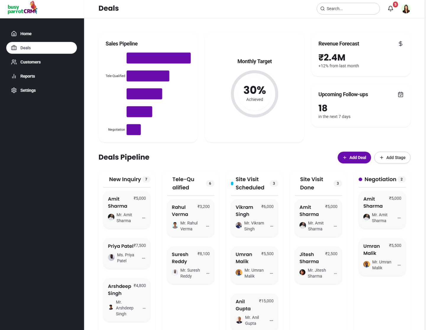 Busy Parrot CRM brings your WhatsApp conversations, leads, follow-ups, and sales progress into a single real-time dashboard. No guesswork. No scattered chats. Just complete visibility into what’s working and what needs action.