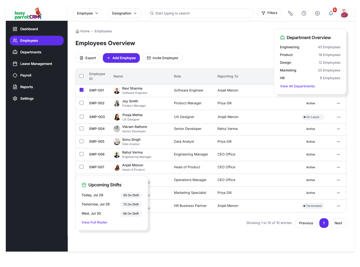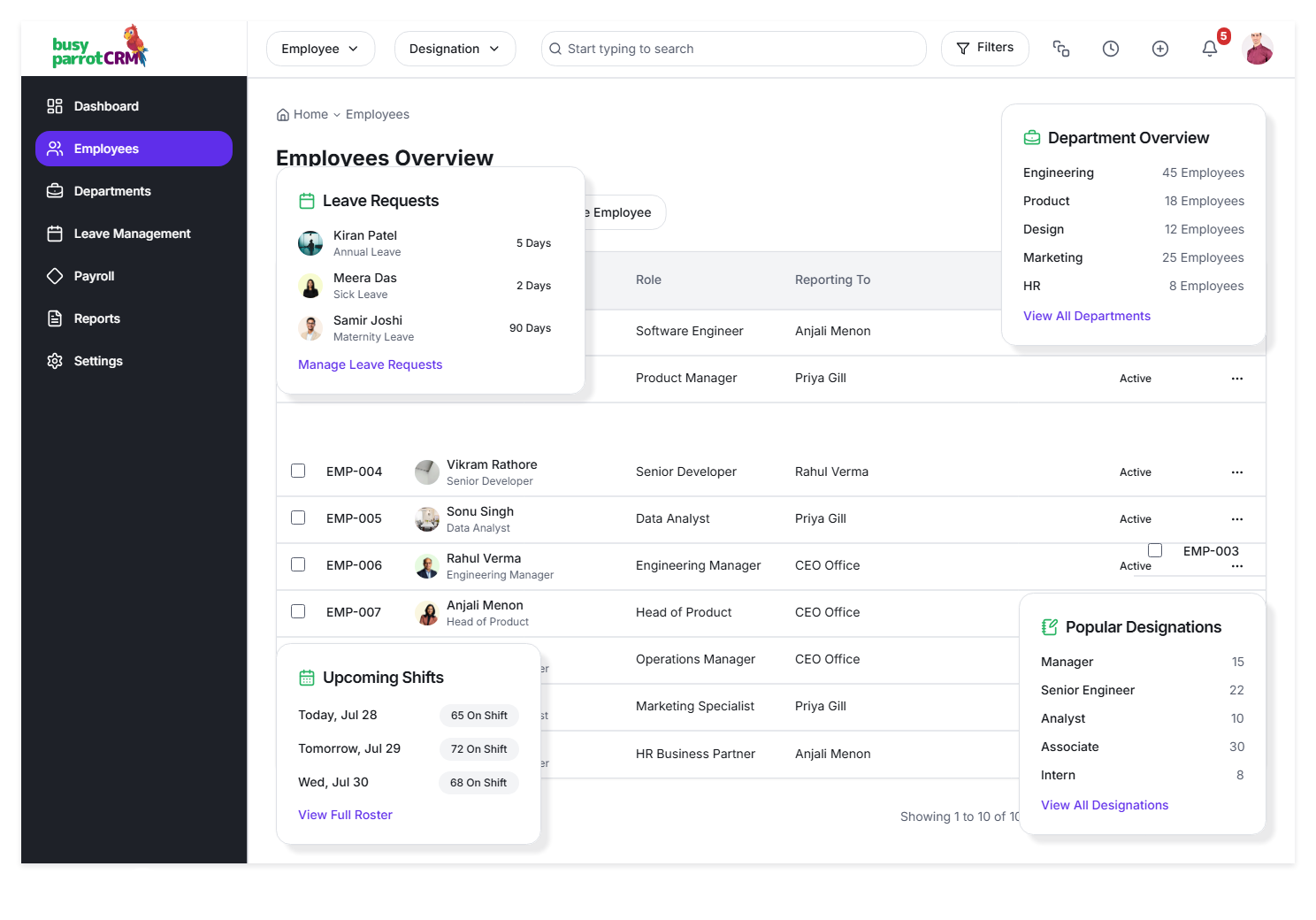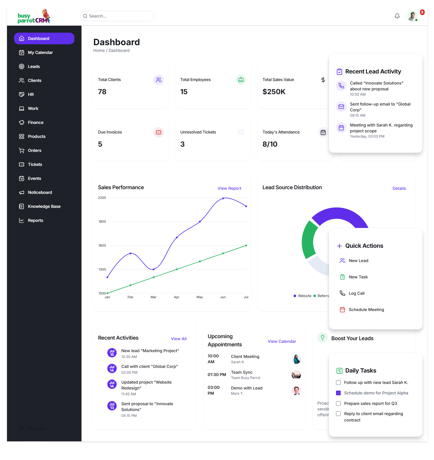 Busy Parrot CRM is more than tracking deals. It brings your daily work, follow-ups, tasks, teams, documents, and performance into one structured system — so nothing slips through the cracks.