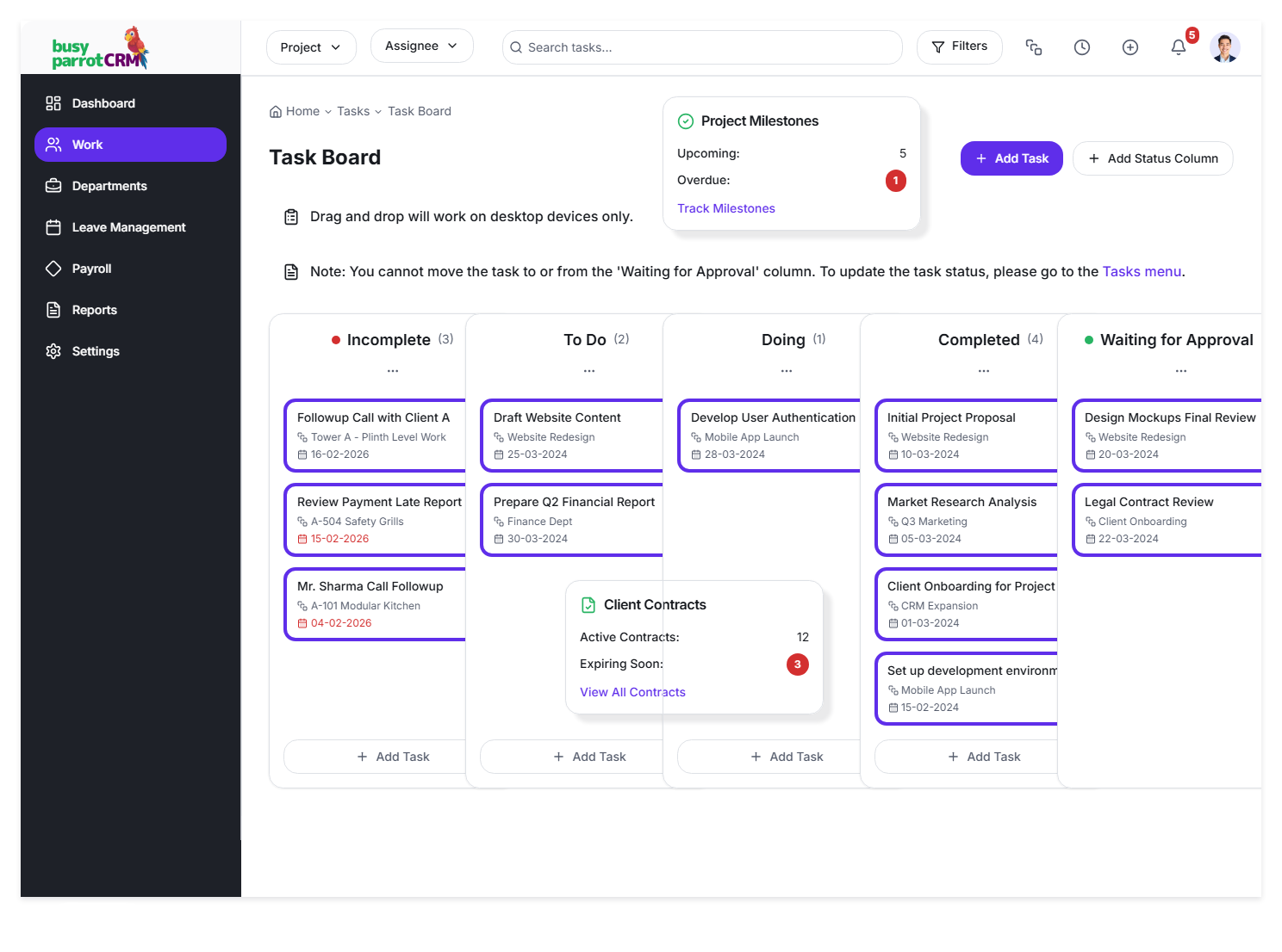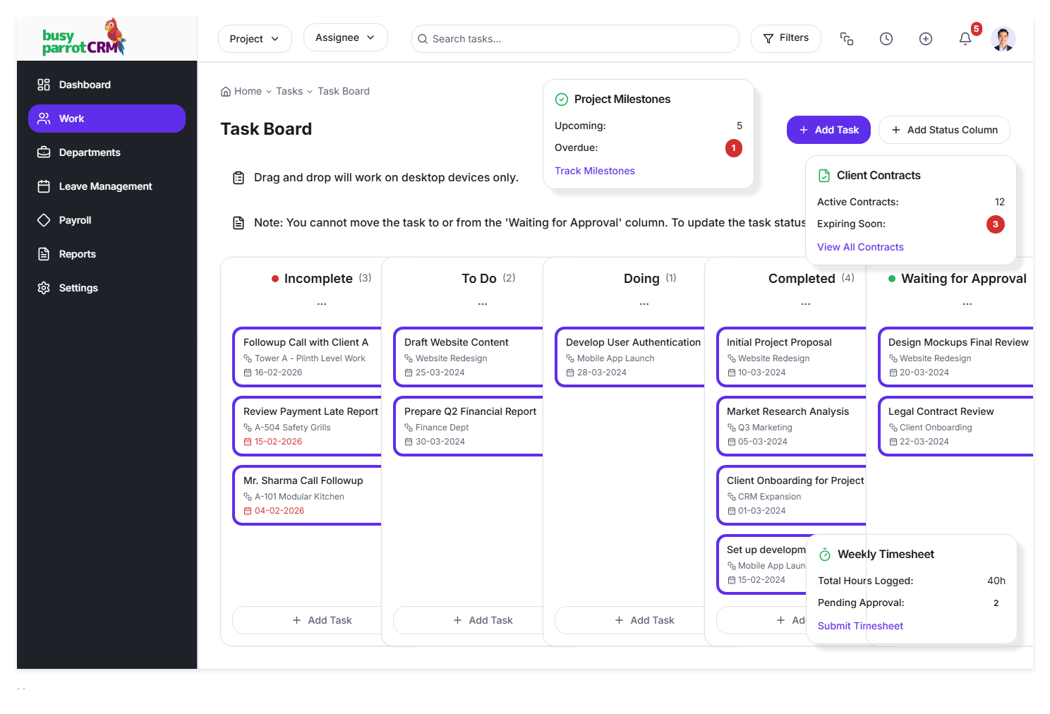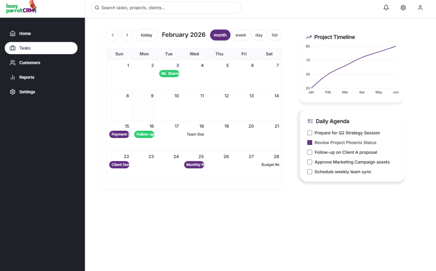 Busy Parrot CRM is designed around how teams actually work – daily tasks, follow-ups, schedules, and decisions – so work stays organized without extra effort.
