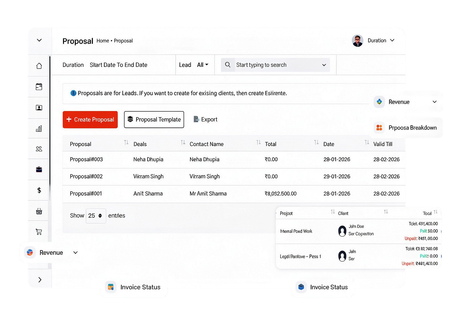 Monitor every deal’s status, progress, and conversion in one clear pipeline. Stay on top of active, overdue, and closed deals without losing revenue visibility.
