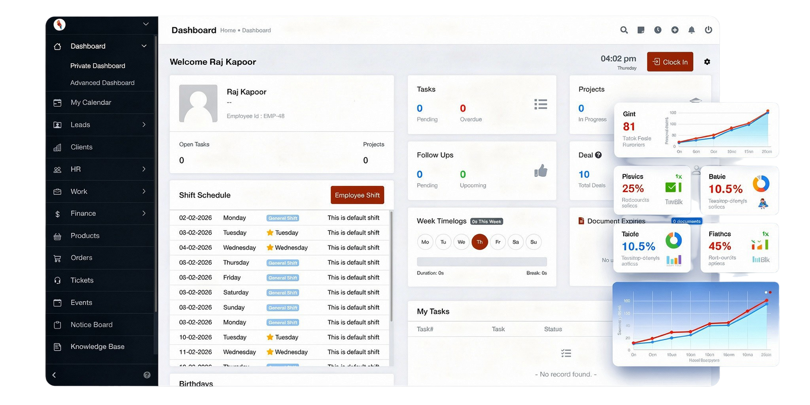 Tasks, follow-ups, shifts, and alerts are visible the moment you log in.