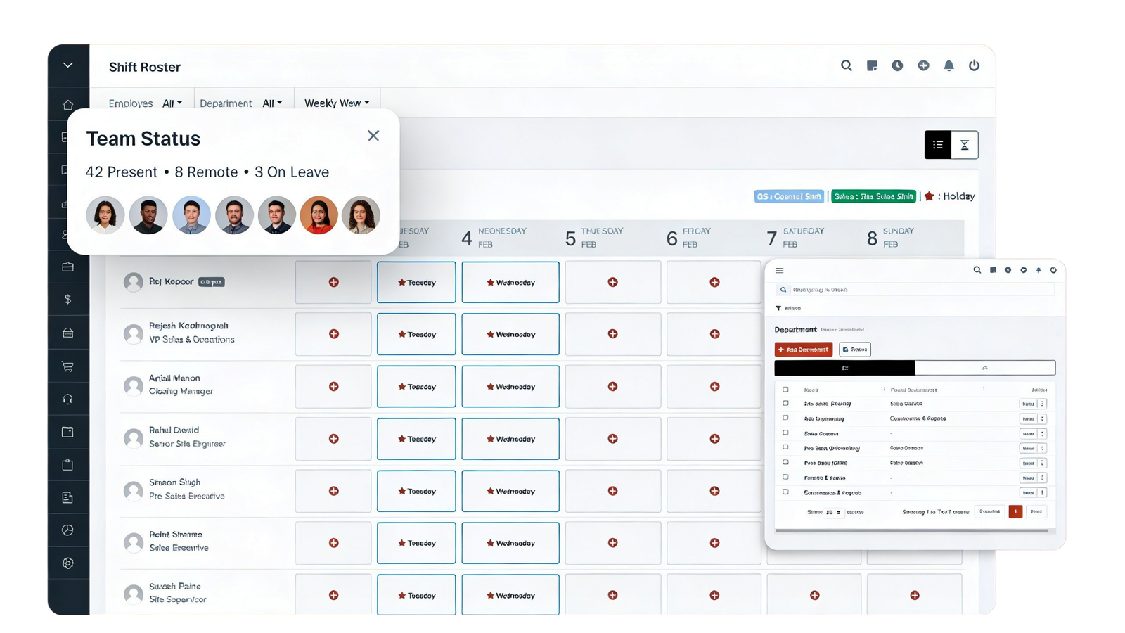 Get a real-time view of employee schedules, shifts, time logs, and work status so teams stay aligned and accountable every day.